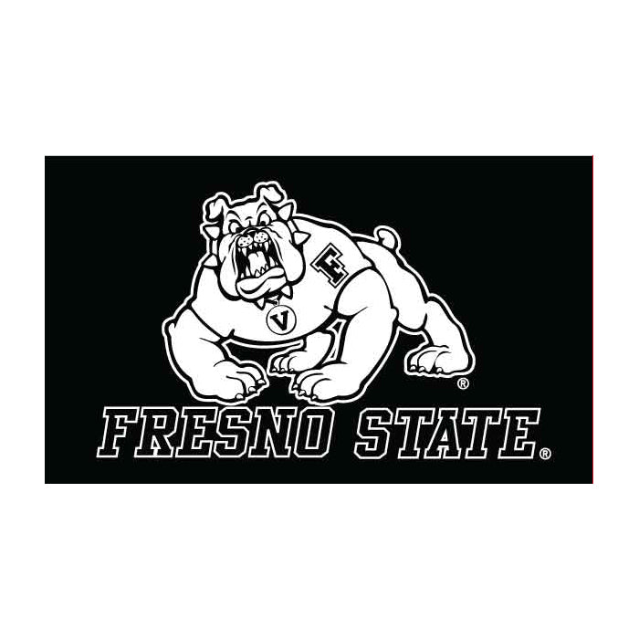 There is no better way to show off your Bulldog pride with than a 3'x5' nylon flag! This beautifully designed black colored Fresno State flag features the primary 4Paw Bulldog logo in white as well as text right underneath that reads "Fresno State" - go Dogs! Flag pole not included.