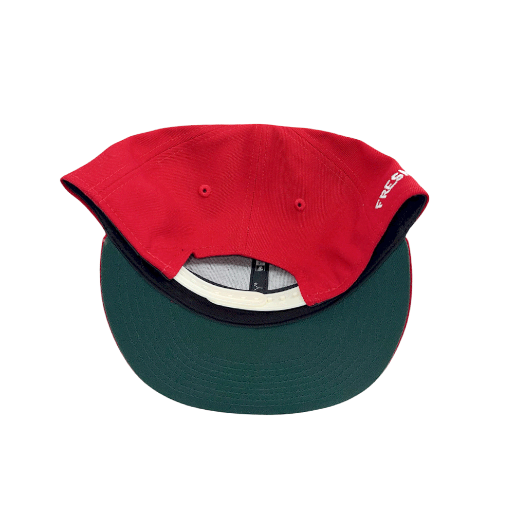 Represent the Bulldogs in vintage style with the New Era Vault Dog hat! This New Era 9Fifty snapback features a green under visor, a cream colored strap, and an embroidered design proudly showcasing a Vault Sailor Bulldog Logo up front along with an arched "Fresno State" wordmark on the side. Go Dogs!