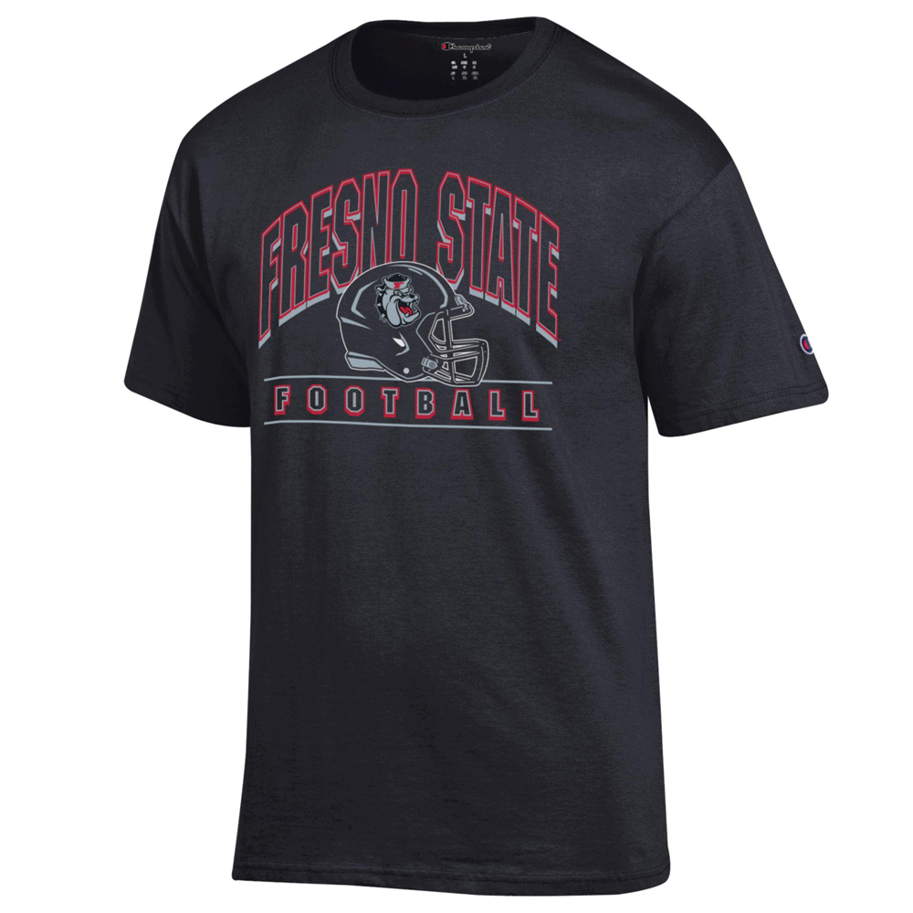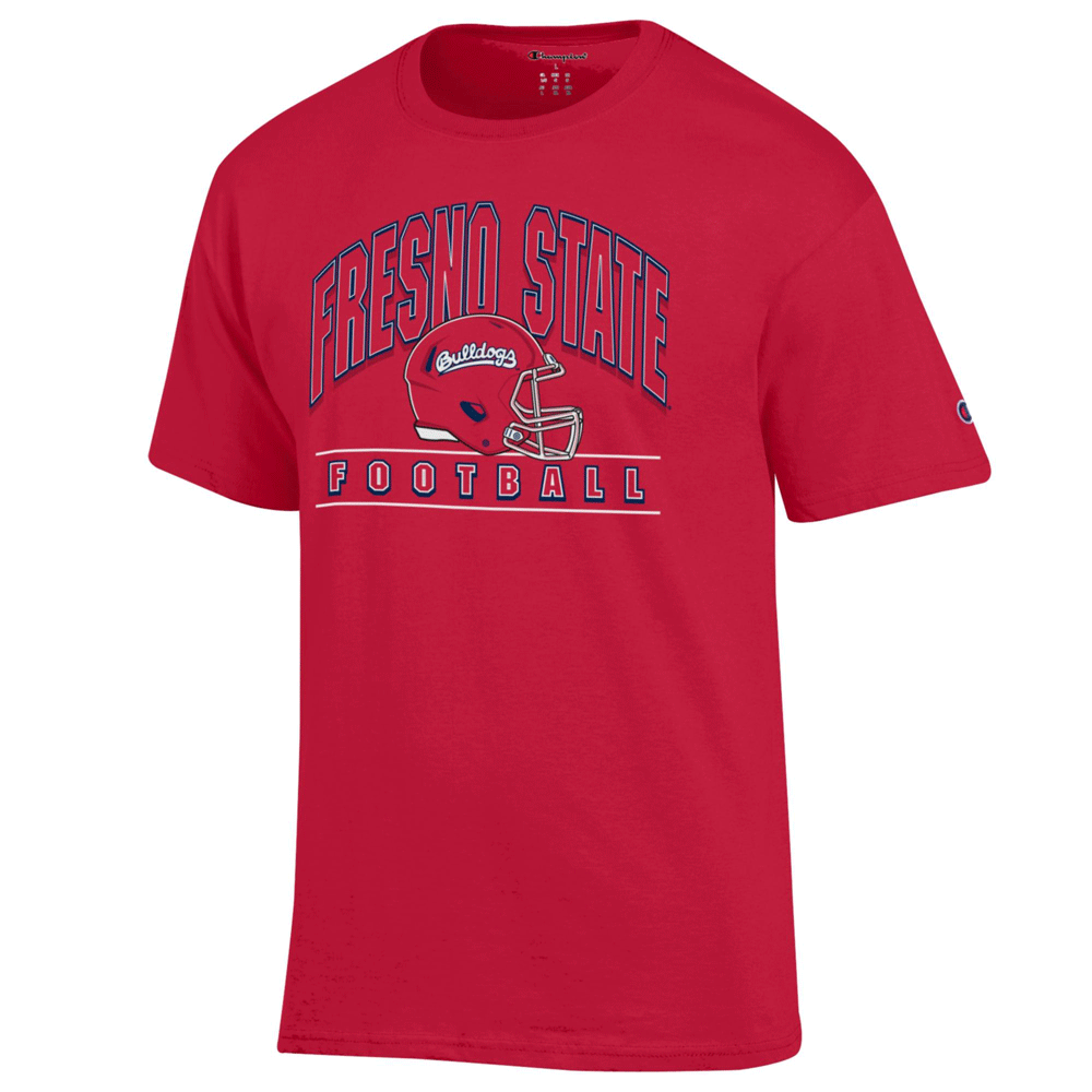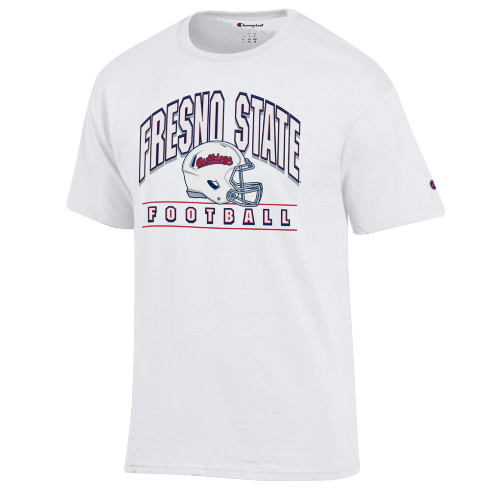 Represent Fresno State football with the Fresno State Football Tee from Champion! This men's t-shirt is made of 100% cotton and features a Fresno State football helmet along with collegiate text reading "Fresno State Football". Perfect for game day and tailgating - Go Dogs!