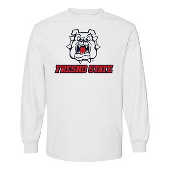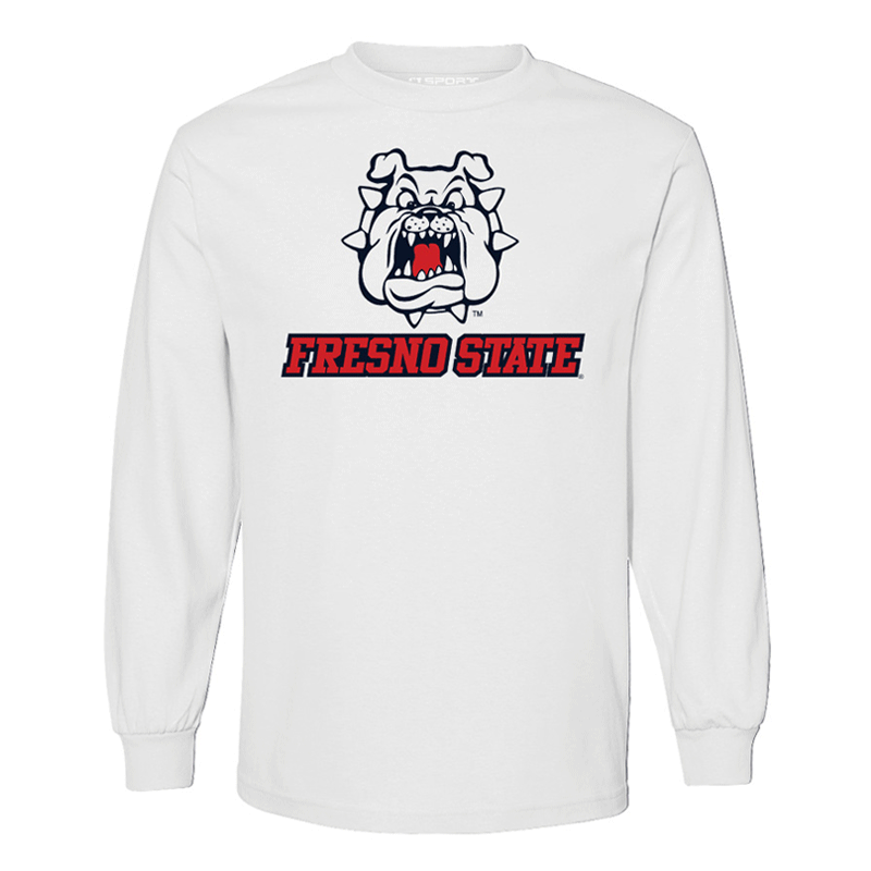 Get ready for the White Out 11/22 with the Dog Face White Out LS! This men's long sleeve shirt is made of 100% cotton and features a screenprinted design proudly showcasing a Dog Face logo along with a red "Fresno State" wordmark logo. Go Dogs!