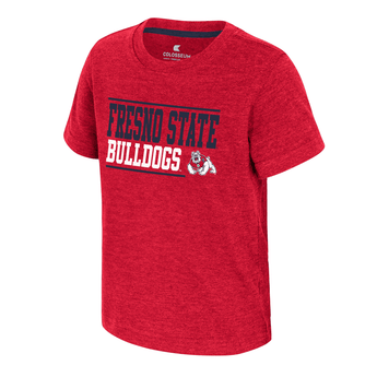 Dress your young Bulldog fan up with the Toddler Explorer Tee! This toddler sized t-shirt is made of a comfortable cotton/polyester blend and features a screen printed design proudly showcasing a primary 4Paw Bulldog logo along with "Fresno State" in navy and "Bulldogs" in white. Perfect for game day!