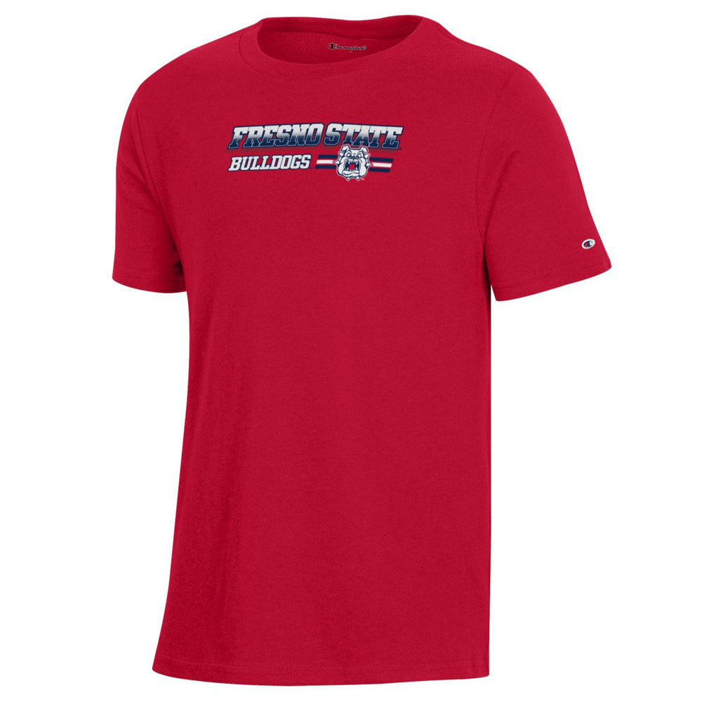Dress your young Fresno State fan in the best with the Youth High Definition Tee! This Champion branded t-shirt is made of 100% cotton and features a screenprinted graphic proudly pairing the beloved Dog Face logo with stylized text which reads “Fresno State Bulldogs”. Go Dogs!